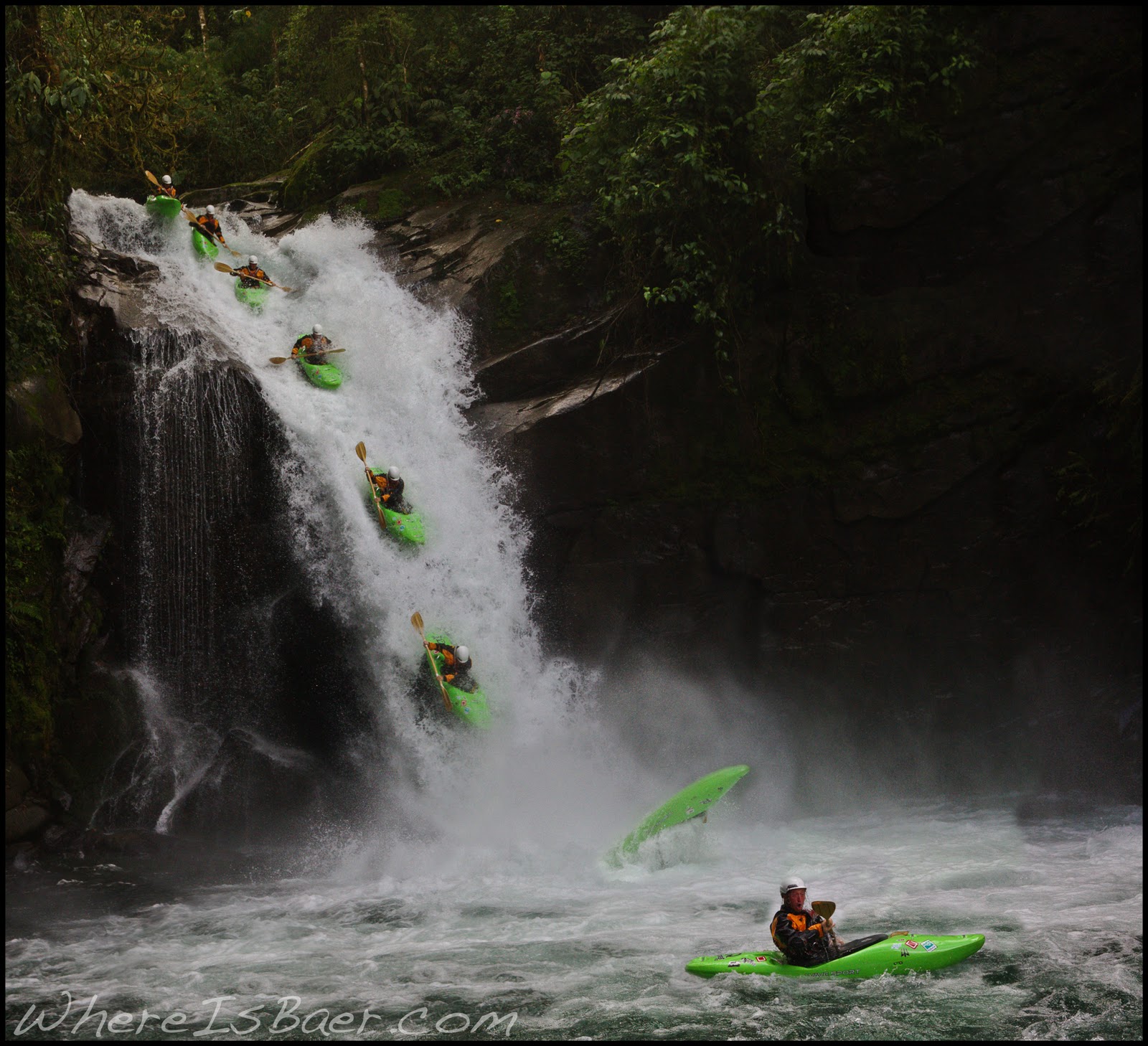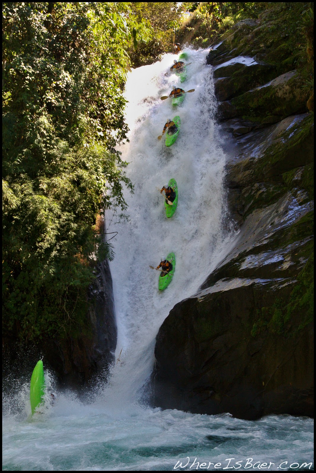 For the last few years, I have been having rather entertaining Christmas days. Two years ago I tubed the Micos water fall run in Mexico. Last year I ran the biggest drop of my life, the 70ft middle Palguine. This year the plan was to get the second descent of the La Perla waterfall. As I stood above the 50 foot slide to vert, I was all smiles. John got himself positioned with the rope and camera, we exchanged head nods, and it was time to go.