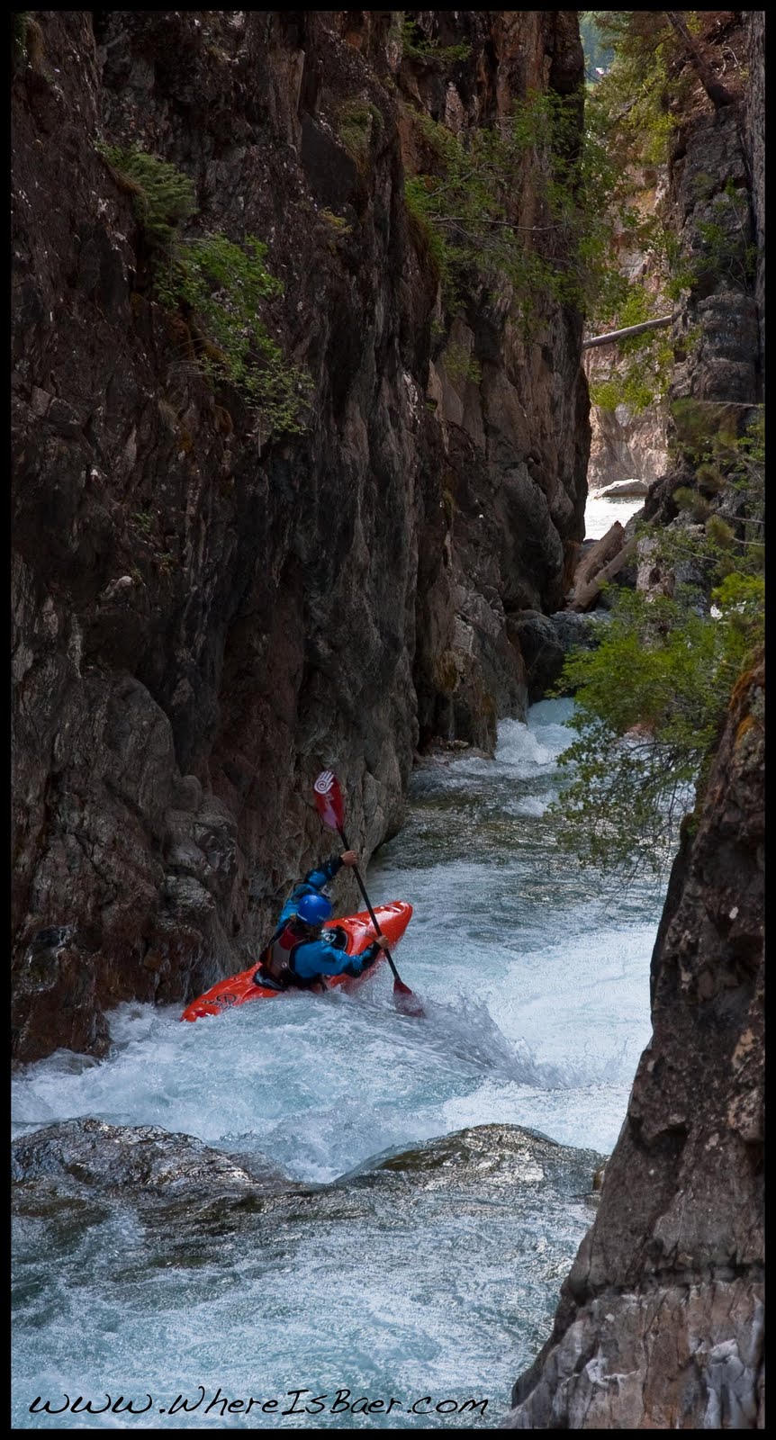 One by one eight in a row the group rallies off of Zute Chute with a myriad of both good, bad, painful, and just plain ugly lines. We are in the Inner Gorge, “the walls are slick with spray there is seldom sun and there are NO RASPBERRIES” I love this place. The group quickly picks apart the drops and one after the next, we move further and further through the gorge.