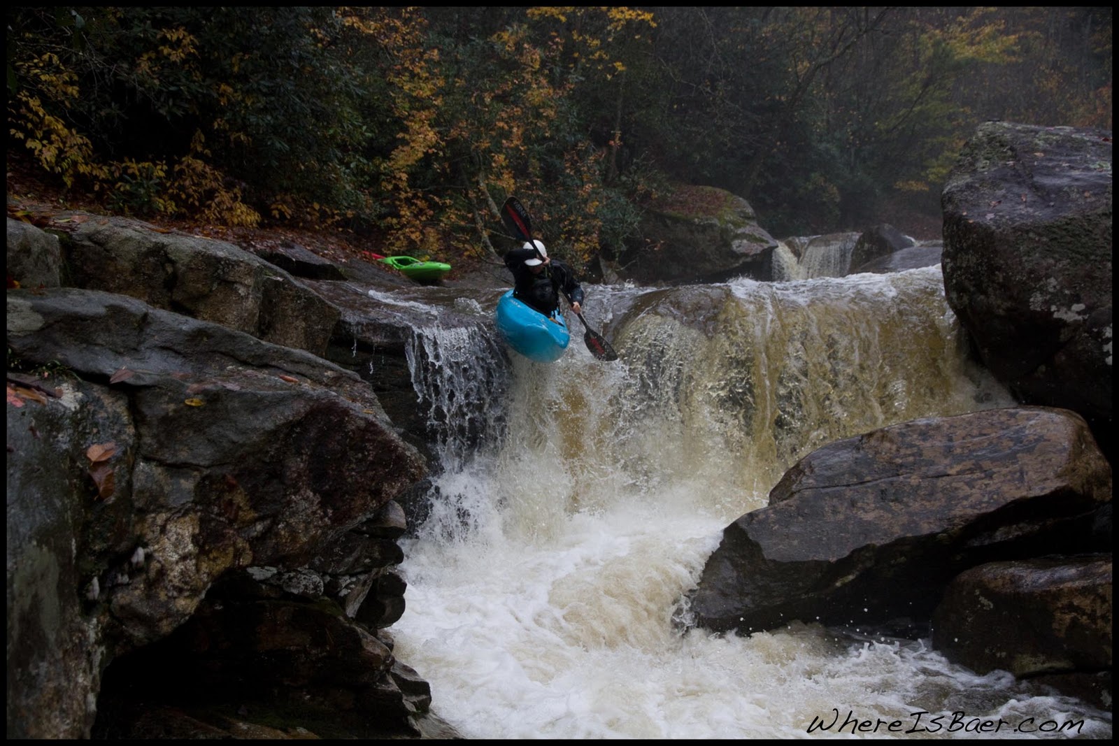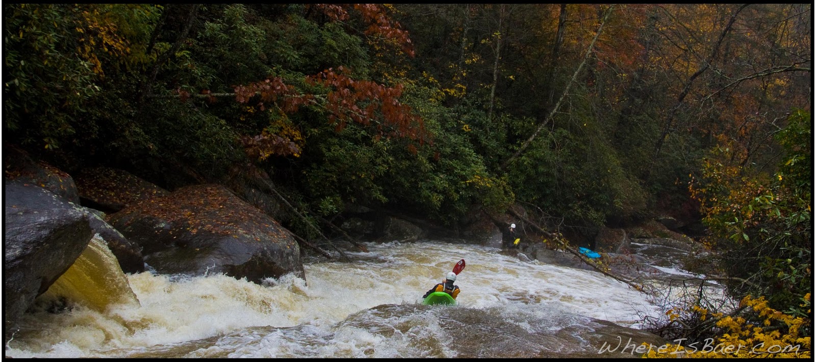 Well it wasn’t a light hike. It seems I have been bringing the rain to the South East for a few years and this year was no exception. With the rain pounding down I meet up with Gareth Tate, we cruised out to pick up Lee Timmons and heading to the Horse Pasture as we past over the Toxaway I had to stop and check the gauge, it was in!, but it was also 1:30 pm, and way to late in the day to start a huge mission into the Toxaway. So we drove on and got to the Horse Pasture, the level was on the high side of good. We hiked to the river and the thunderous put in falls almost blew me over. Lee had a bad vibe from the get go, but was willing to play along for a bit. Gareth and I where on our usual style, LETS GET THIS SHIT! We bombed off the first couple drops and Lee decided to bail, and hike out. Gareth and I managed to push down stream and get to the bottom of Stair-step before we started loosing light. With a small, inexperienced crew, loosing light, we made a good decision and hiked out. By the time I made it back up the hill to the Wrec Center it was already time to break out the Petzel head lamp.